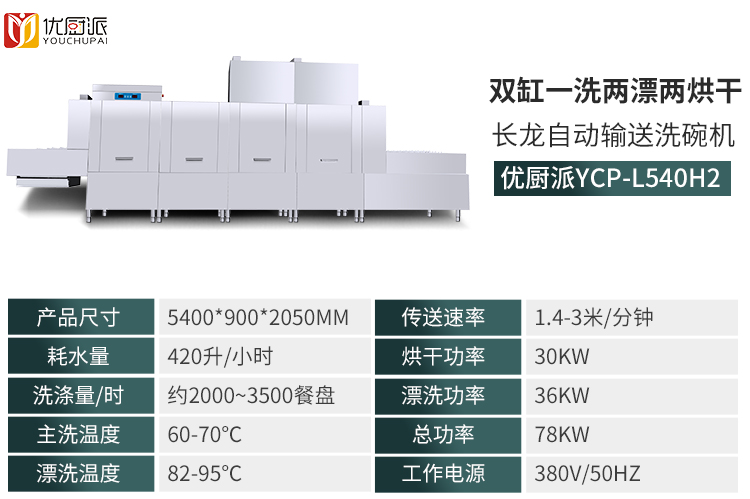 三缸两洗两漂一烘干长龙式洗碗机